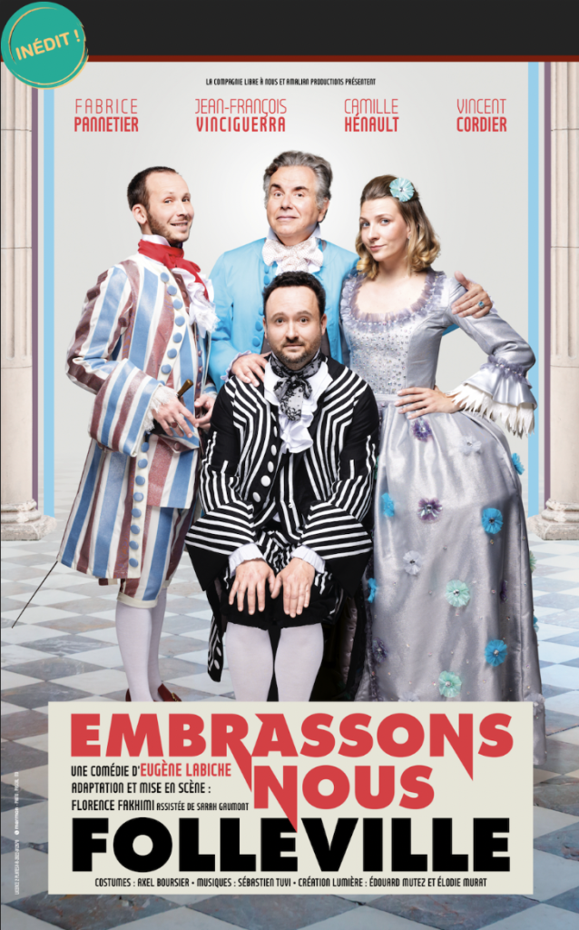 "Embrassons-nous Folleville" est l'une des comédies les plus délirantes de Labiche. Folleville doit se marier avec sa cousine Aloïse, mais le marquis de Manicamp, qui l'ignore, veut qu'il épouse sa fille, Berthe. Pour ne rien arranger, un invité surprise, le vicomte de Chatenay, a décidé que Berthe était la femme de sa vie... Spectacle aux rires garantis !