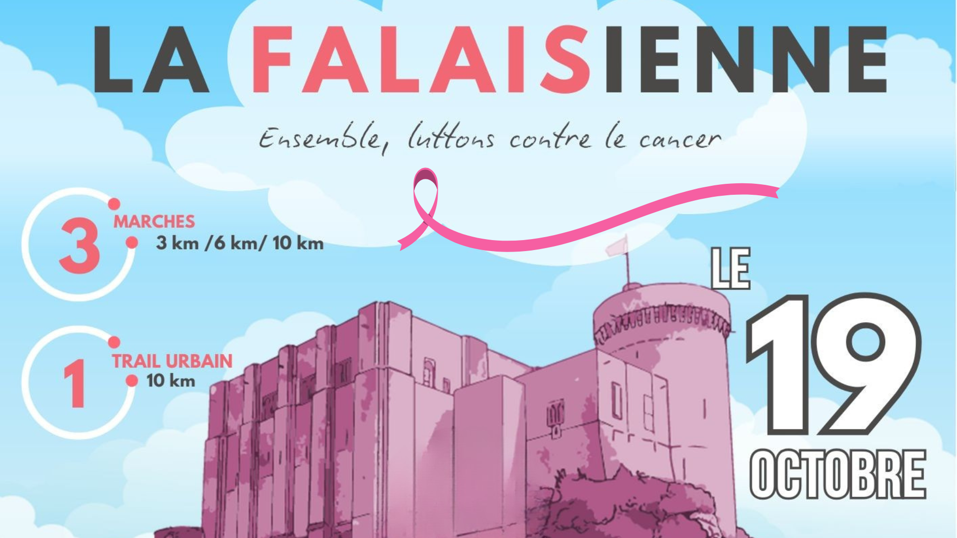 L'UCIA Falaise vous donne rendez-vous le dimanche 19 octobre pour la 5ème édition de la Falaisienne contre le cancer, dont les fonds récoltés seront reversés à la Ligue contre le Cancer, 3 marches et un Trail Urbain vous sont proposés :