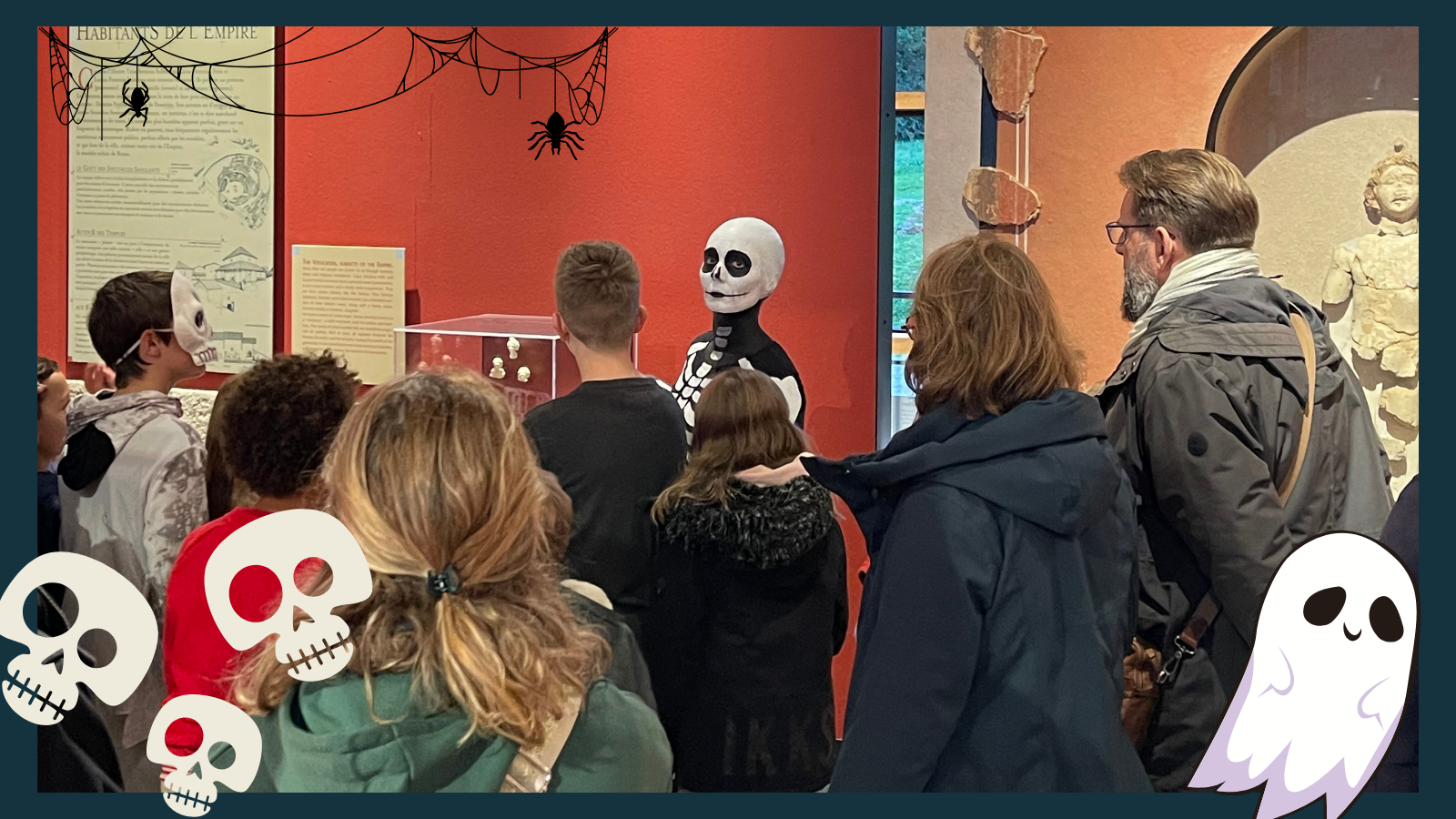 Revenu du monde des morts des Romains, un squelette vous guide à la découverte des croyances et fêtes romaines autour de la mort...