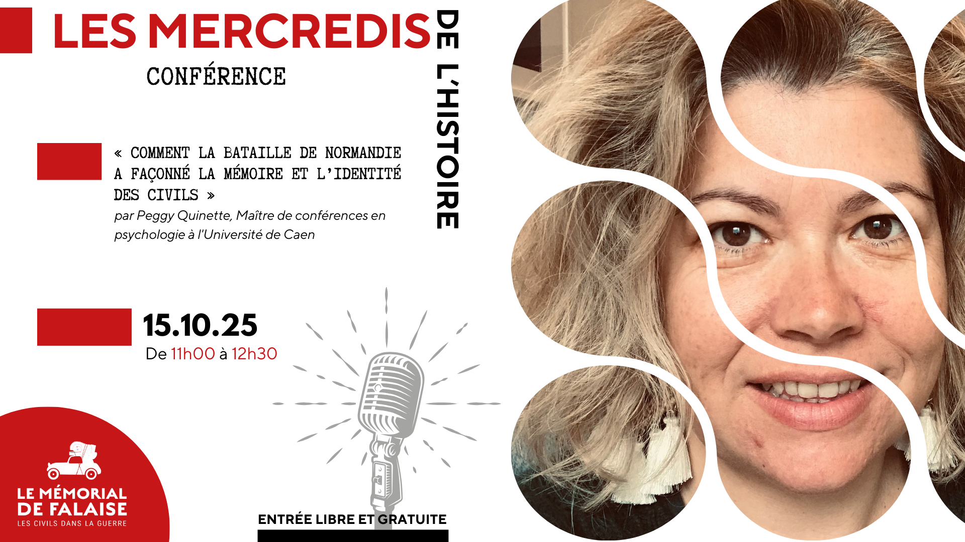 Les Mercredis de l'Histoire sont de retour au Mémorial de Falaise, Conférence le 15 octobre par Peggy Quinette : « Comment la bataille de Normandie a façonné la mémoire et l’identité des civils »