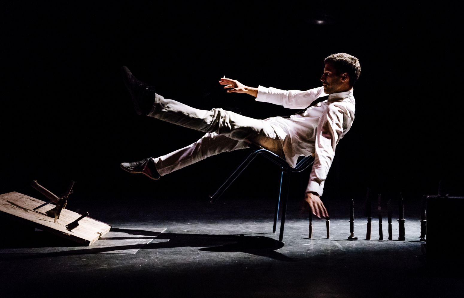 À la croisée du cirque, de la performance et de la danse contemporaine, Marc Oosterhoff propose un solo sans parole aussi drôle que saisissant, basé sur le risque et l’adrénaline. Une bouteille de whisky, des couteaux, des pièges à rats, des verres, des boulettes de papier… L’artiste pose ses propres règles et s’invente des défis aussi absurdes que dangereux. Il interroge notre besoin de sécurité, nos limites, notre fascination pour le danger. Le public, partagé entre hilarité et tension, observe, retient son souffle, soutient ce funambule de l’extrême avec une bienveillance mêlée d’inquiétude.